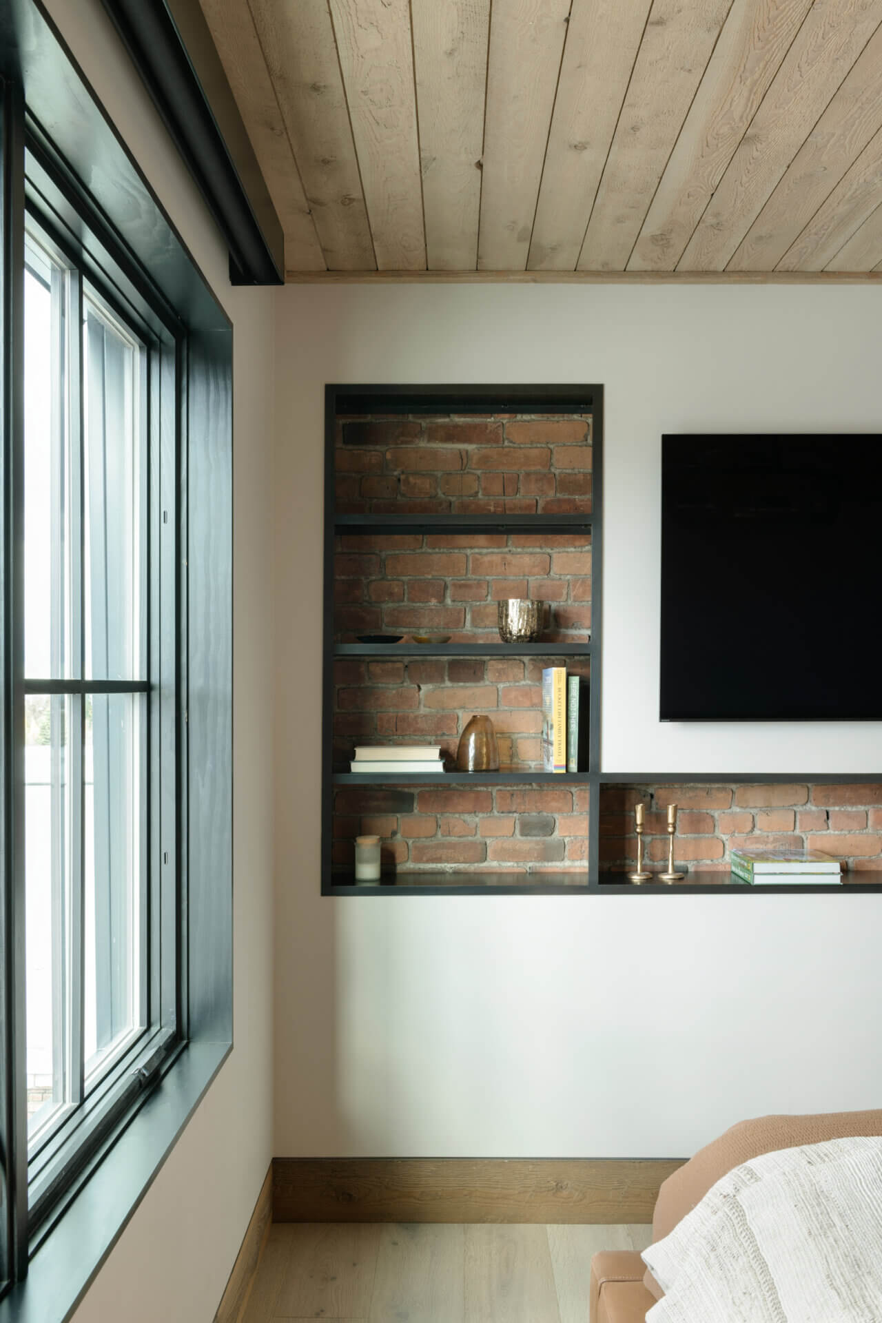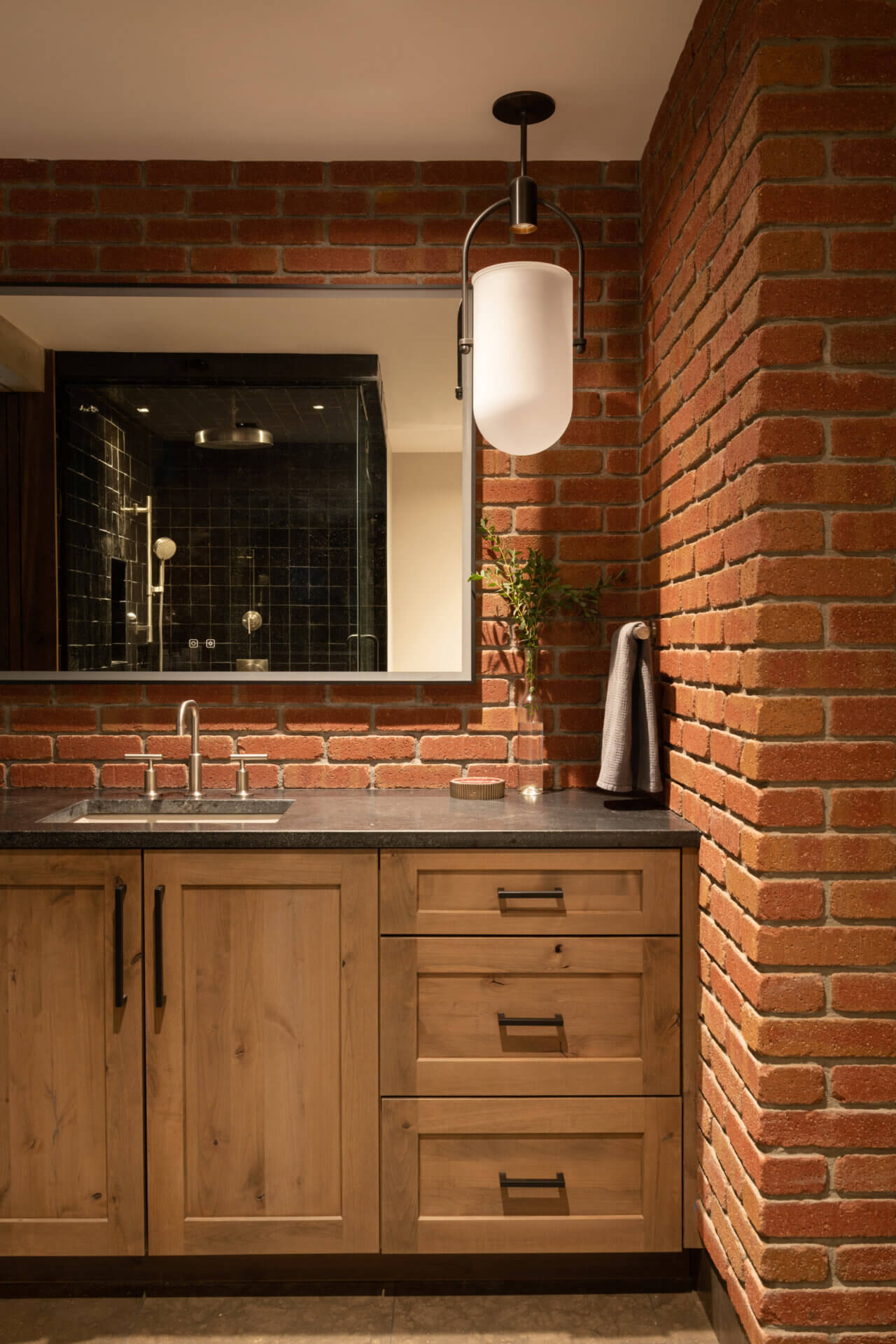 The original brick Romanesque-style building was designed by architect George Hancock in 1891 as part of Bozeman’s bid to become Montana’s capital city. The two-bedroom penthouse itself was a later addition designed by architect Fred Willson, whose work during the mid-1900s shaped many of Bozeman’s most recognizable architectural landmarks. The new owners’ directive was to bring the space into the twenty first century while respecting its historic character.