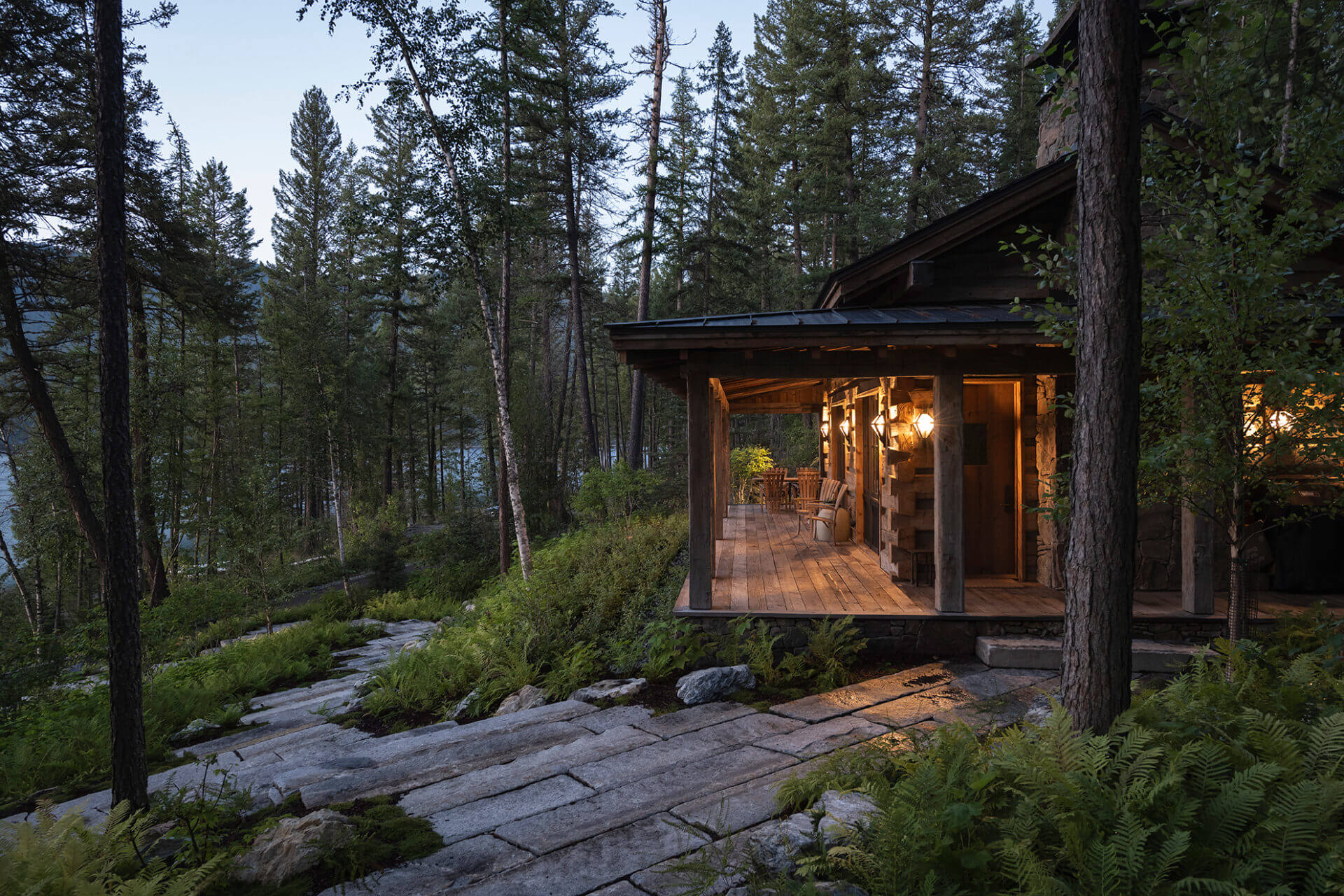 Set against a lush forested hillside alongside Whitefish Lake, this minimalist guest cabin has everything you need to unplug, turn off, and tune in to lake life. Traditional details, modern amenities, comfortable porches, and paths to the waterfront coalesce to create a space to enjoy for a weekend or a lifetime.