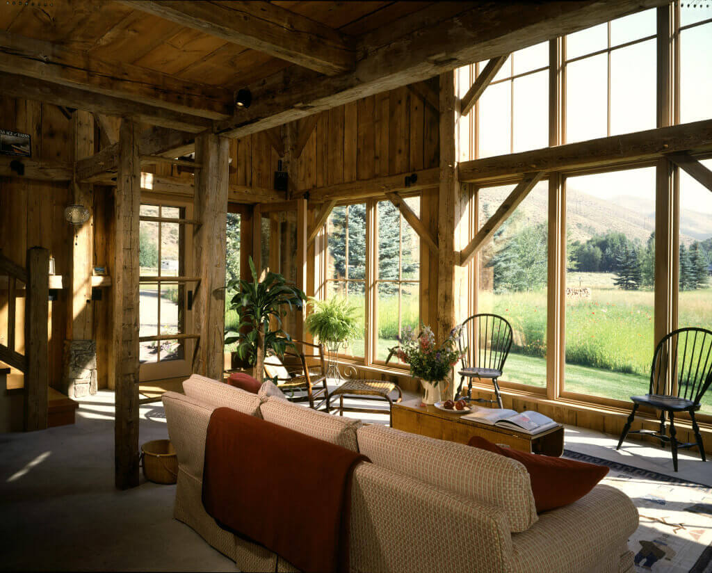 This Sun Valley residence gets character from a reclaimed Vermont barn's timbers.