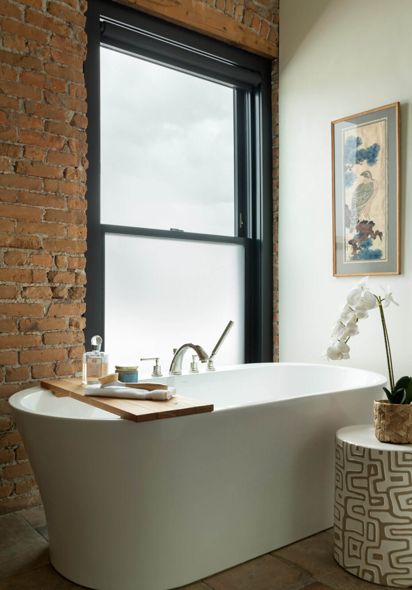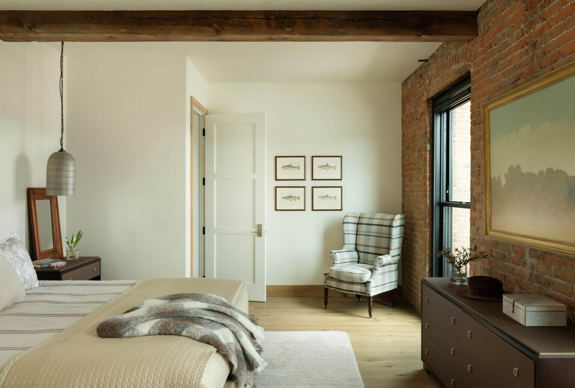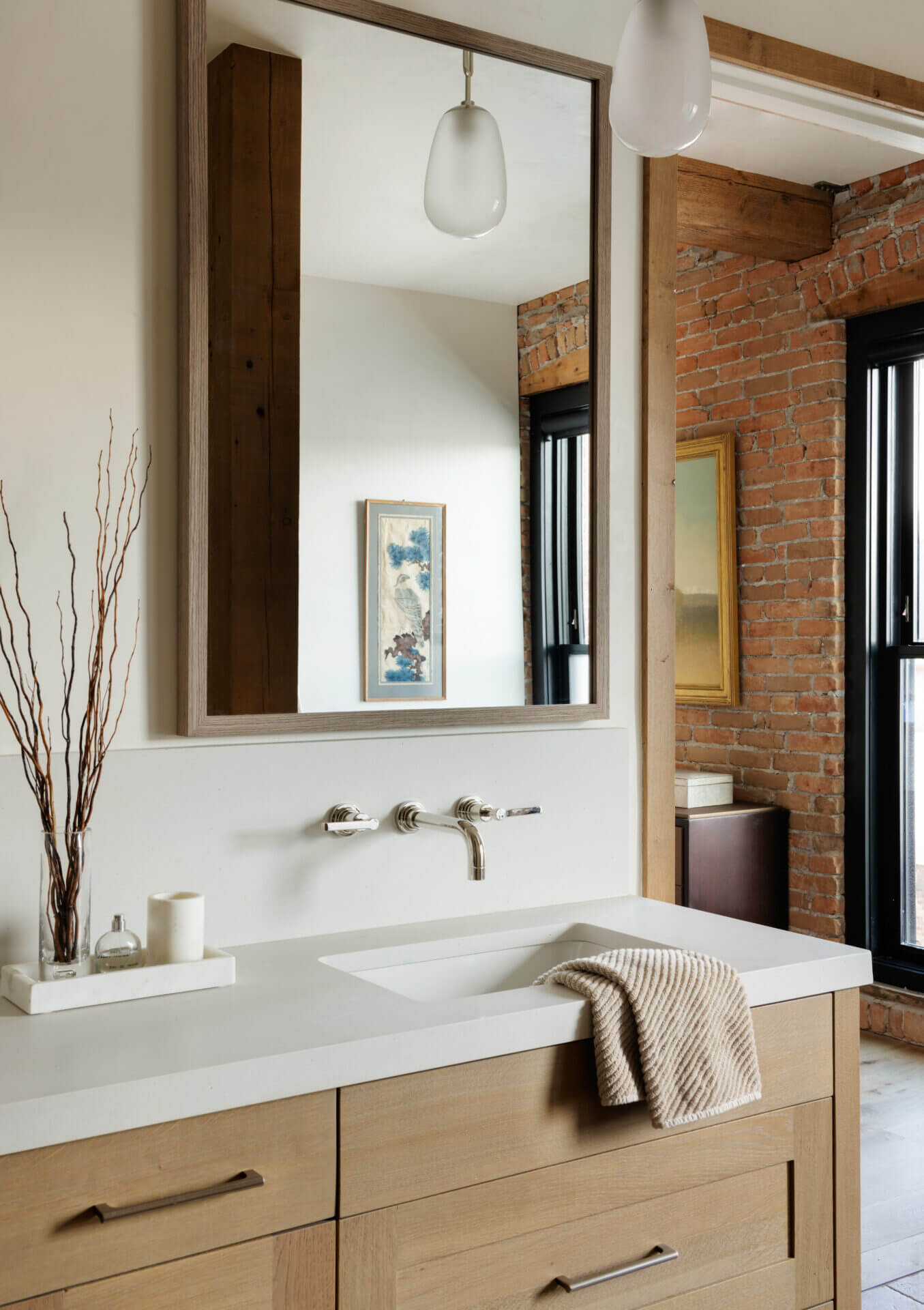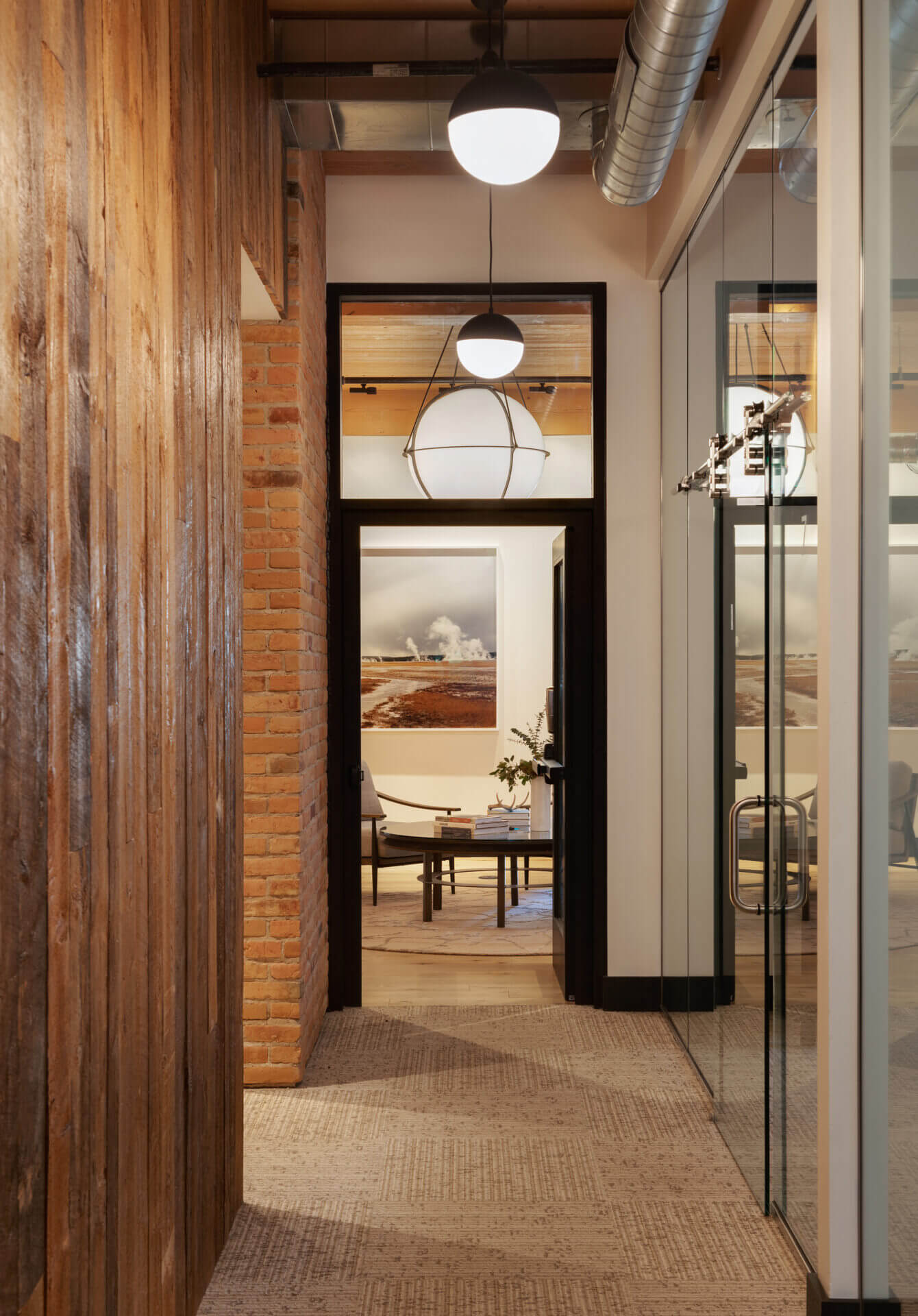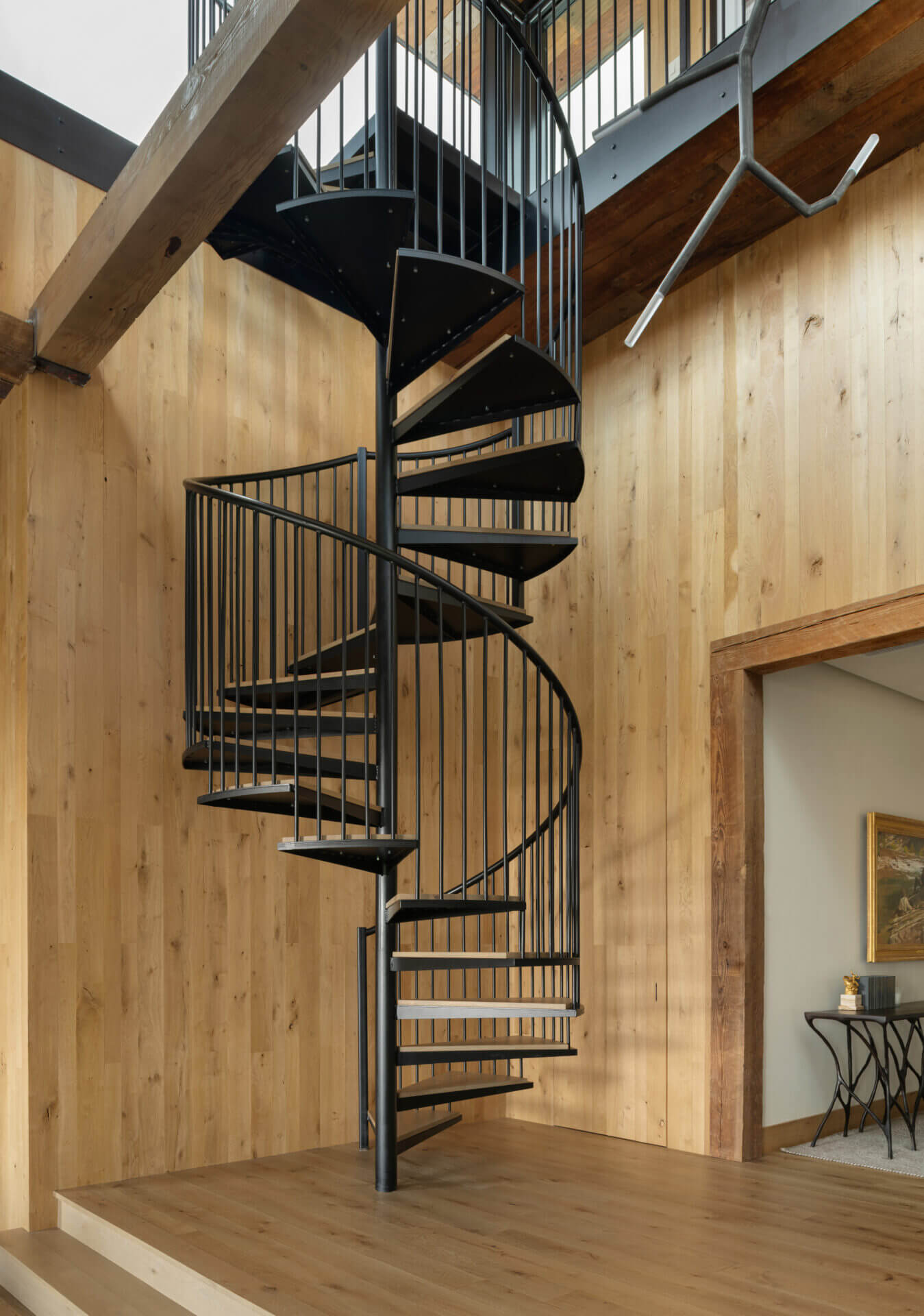 A historic brick building in Bozeman’s downtown underwent a much-needed renovation, restoring its 1910 façade and opening the opportunity to focus a modern lens on this piede-à-terre and the office spaces below it. Original brick and timbers blend with steel and light finishes, letting the loft feel airy and bright. A spiral stair leads to a rooftop tower and deck where mountains define the horizon in every direction. The City of Bozeman Historic Preservation Board granted this restoration a Historic Preservation Award.