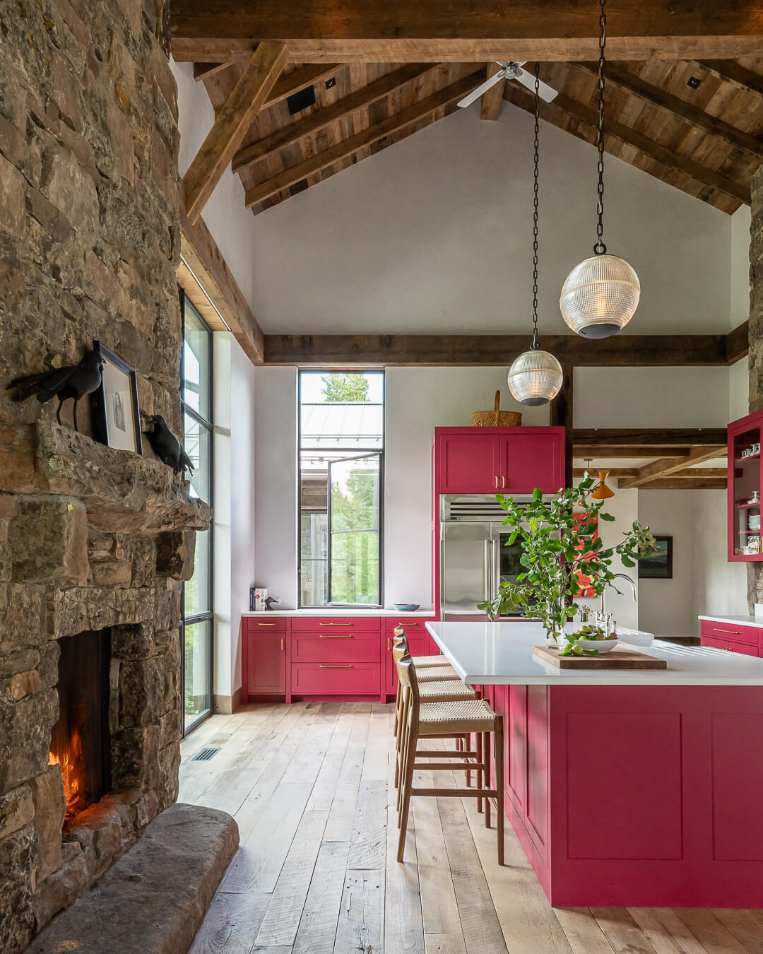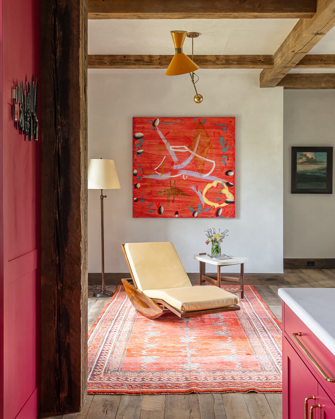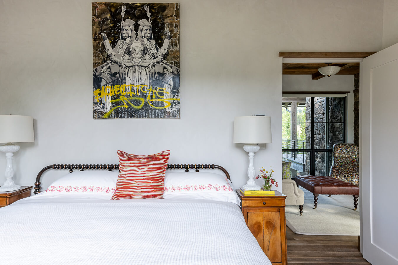 Restrained spaces provide quiet backdrops for an ample art collection, while extensive windows capture natural daylighting and frame the high mountain peaks in the distance. Locally quarried stone walls comfortably anchor communal gathering areas, while a soaring verticality and abundant glazing keep the architecture feeling light and airy. Rooms respond to the owner’s unique style – quiet tranquility in specific areas and bold vibrancy in others, creating a harmonious flow that forms a calm framework for holding all the moments and memories of daily living.