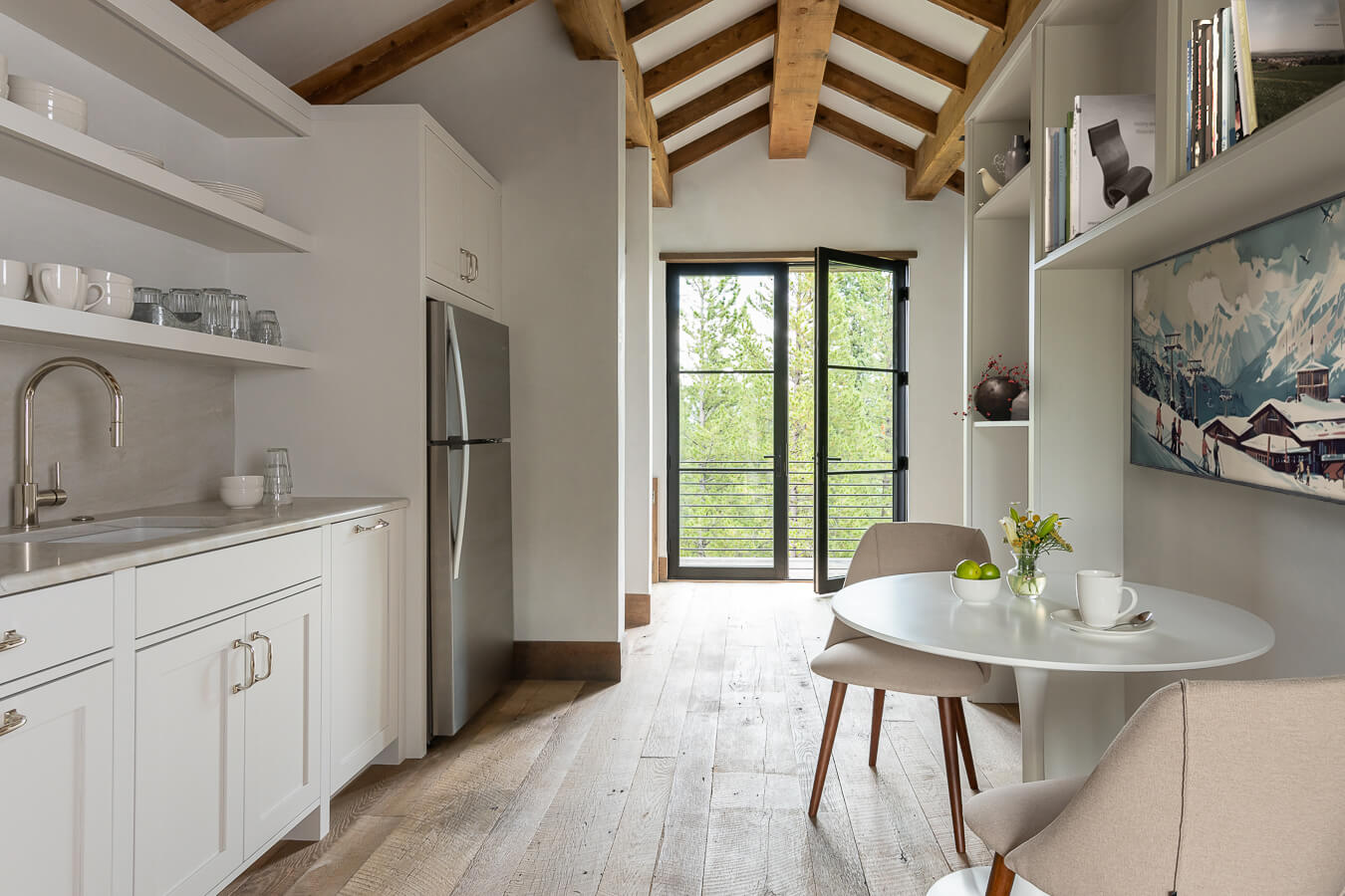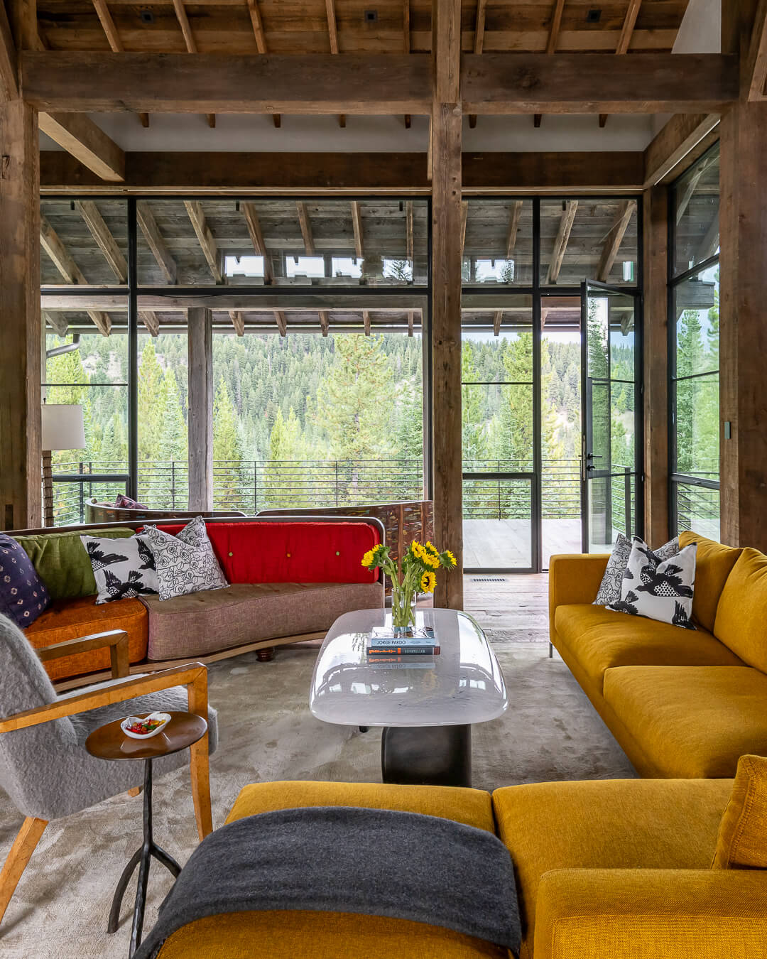 This year-round refuge, nestled into a timbered hillside high in the Madison Range, is a gathering place for the owner, her children, and their growing family. The home is warm and inviting while maintaining a simple, clean elegance and a sense of rustic refinement.